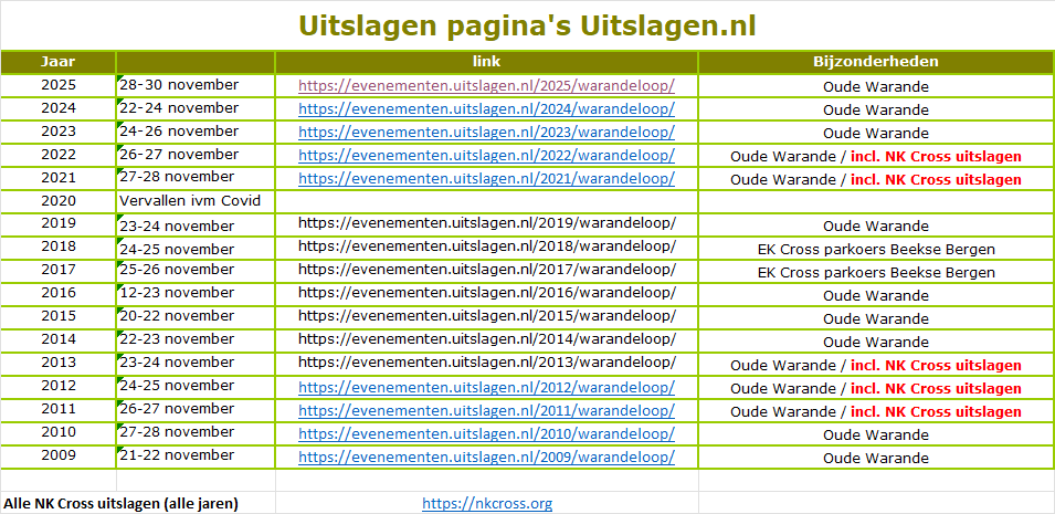 Uitslagen Warandeloop / NK Cross 2025